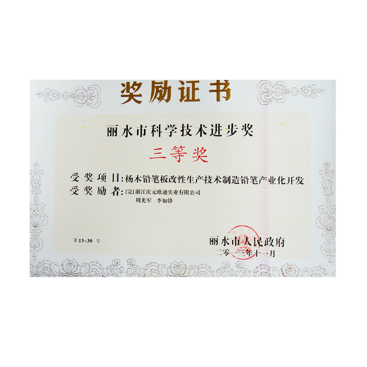 麗水市科學(xué)技術(shù)進(jìn)步獎三等獎